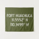 Coordenadas de mapa de latitud y longitud para la instalación del ejército de Fort Huachuca, fuente blanca estilo Esténcil de Sierra Vista Arizona sobre fondo verde del ejército.