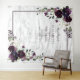 Crea las fotos de recepción perfectas con este diseño de tapiz de moda que presenta elementos botánicos florales de ciruela morado y eucalipto, elementos de esquina de polvo de oro falso, marco de ciruela morado y fondo de mármol de carrera falso. Perfecto para bodas de otoño e invierno. Copyright Elegant Invites, todos los derechos reservados.
