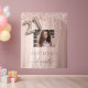 Un tapiz para una fiesta de cumpleaños número 21 femenina y glamurosa. Un fondo degradado rosa con dorado rosado y gotas de brillo falso color dorado rosado elegante con un aspecto de pintura goteando. Personalice y agregue su propia foto de alta calidad de la cumpleañera. El texto: el nombre está escrito en dorado rosado oscuro con un estilo de letra manuscrita moderna con florituras. El número 21 está escrito con una fuente de estilo globo moderno. Para mantener las florituras, simplemente elimine el nombre de muestra, deje los espacios o emojis delante y detrás del nombre. Se puede utilizar como pancarta de bienvenida, decoración de pared para la fiesta o como fondo para cabina de fotos.