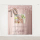 Un tapiz para una fiesta de 70 cumpleaños femenina y glamurosa. Un fondo degradado rosa con dorado rosa con gotas de brillo falso de color dorado rosa elegante, aspecto de pintura goteando. Personalice y agregue su propia foto de alta calidad de la cumpleañera. El texto: el nombre está escrito en dorado rosa oscuro con un estilo de letra manuscrita moderna con florituras. El número 70 está escrito con una fuente de estilo globo trendy. Para mantener las florituras, elimine el nombre de muestra, deje los espacios o emojis delante y detrás del nombre. Se puede utilizar como pancarta de bienvenida, decoración de pared para la fiesta o como fondo para cabina de fotos.