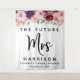 Manta personalizada moderna de "La Futura Sra" para el photobooth de tu despedida de soltera. La parte superior presenta flores de acuarela en burgundy, rojo y rosa claro y vegetación. "Sra" está escrito en una elegante letra cursiva grande, y puedes personalizarlo con tu apellido de casada, nombre y fecha de la despedida.