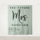 Minimalista moderna "La futura Sra" personalizada tapiz verde salvia para tu fiesta de despedida de soltera. "Sra" está escrito en una elegante letra cursiva grande. Personaliza con tu futuro apellido de casada, nombre y fecha de la fiesta. La esquina inferior se deja en blanco para que tus invitados tomen fotos.