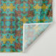 Los patrones vivos azules y amarillos se entrelazan en un diseño simétrico y caleidoscópico. Los detalles intrincados crean un efecto hipnotizante que recuerda a un tapiz o mosaico.