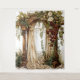 Elevate your ceremony with this captivating wedding backdrop, showcasing a hand-illustrated archway draped in soft ivory fabric and embraced by abundant greenery and romantic florals. Intricately carved wood columns and vibrant blooms—featuring deep reds and creamy whites—create a lush, storybook setting ideal for timeless wedding themes. The gently paved path beneath adds depth and natural charm, making it perfect for heartfelt vows and unforgettable photographs.