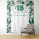 Esta elegante tapicería de Quinceañera presenta un arco de globos brillantes en varios tonos de verde y blanco con el número de globo 15. Las serpentinas y el confeti que caen en verde y blanco completan la atmósfera de la fiesta. Agrega tu nombre para personalizar. Fácil de personalizar haciendo clic en "Personalizar". Se puede utilizar como pancarta de bienvenida, decoración de pared para la fiesta o como fondo para el fotomatón.