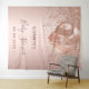 Para una elegante Baby Shower. Un fondo metálico falso dorado rosa. Decorado con gotas de brillo falsas rosadas, efecto de pintura goteante, gotas de brillo y globos. Personaliza y añade el nombre y una fecha. Se puede utilizar como pancarta de bienvenida, decoración de pared para la fiesta de Baby Shower o como telón de fondo para fotos.