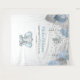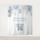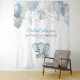 Dale la bienvenida a tus invitados con esta adorable tapicería de bautizo que presenta un elefante niño azul y gris con globos, confeti y cruz plateada. Fácilmente personalizable para tu evento haciendo clic en "personalizar".