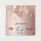 Para una elegante Baby Shower. Un fondo metálico falso de color rosa oro. Decorado con rosa oro, gotas rosadas, efecto de pintura goteando, serpentinas de fiesta, globos y una adorable elefanta bebé niña. Personaliza y añade el nombre y una fecha. Se puede utilizar como pancarta de bienvenida, decoración de pared para la fiesta de Baby Shower.