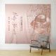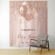 Para una elegante Baby Shower. Un fondo metálico falso rosa oro. Decorado con gotas de purpurina falsas rosas oro, efecto de pintura goteante, gotas de glitter y globos. Personaliza y añade el nombre y una fecha. Se puede utilizar como pancarta de bienvenida, decoración de pared para la fiesta de baby shower o como telón de fondo para fotos.