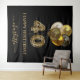 Un tapiz para una fiesta de cumpleaños glamurosa de 40 años. Un fondo negro, decorado con globos. Con el texto: Feliz Cumpleaños. Personaliza y agrega un nombre. El nombre está escrito en rosa oscuro dorado con un estilo de letra manuscrita moderna con florituras. El número 40 está escrito con una fuente de globo moderna, estampado de leopardo. Para mantener las florituras, solo elimina el nombre de muestra, deja los espacios o emojis delante y detrás del nombre. Puede ser utilizado como pancarta de bienvenida, decoración de pared para la fiesta o como fondo para cabina de fotos.