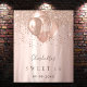 Para una fiesta elegante de Sweet 16, cumpleaños 16. Un fondo degradado de rose gold. Decorado con rose gold, gotas rosadas, efecto de pintura goteando y globos. Personaliza y agrega un nombre, texto/edad y una fecha. Puede ser utilizado como pancarta de bienvenida, decoración de pared para la fiesta o como telón de fondo para fotos.