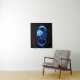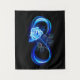 Luminous infinity symbol with glowing, beautiful, lushly blooming rose made of blue flames on black background.