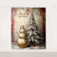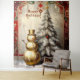 Tapiz Gold Snowman Christmas Tree Holiday Backdrop