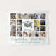 La elegante señal de espuma para fiestas de graduación presenta "Felicidades" en elegante letra de caligrafía negra con gorra de graduado plateada y texto personalizado moderno para el nombre del graduado y año de graduación. El diseño de la foto collage incluye 21 imágenes con espacios reservados que puedes personalizar con tus fotos favoritas de cuando crecía o fotos de retrato del graduado.