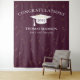 ¡Celebración moderna de graduación con fondo granate para oportunidades de foto! Brillo en la parte superior e inferior, serpentinas doradas desde el borde superior, gorra de graduación blanca y letras. Clase de en letras de brillo dorado con plantilla del año en granate. Agrega año, nombre y nombre de la escuela.