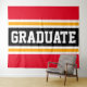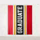 Este diseño deportivo y atlético presenta un texto GRADUADO en negrita dentro de una franja negra ancha resaltada con doble raya blanca y amarilla naranja contra franjas exteriores rojas brillantes. El texto en este diseño se puede personalizar.