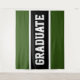 Este brillante y divertido diseño deportivo presenta una franja central horizontal negra delineada en pinstripes blancas centradas verticalmente entre sus rayas verdes del bosque que lo acompañan por encima y por debajo. "GRADUATE" está escrito en letras de gran bloque dentro de la franja central. El texto se puede personalizar.