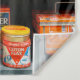 Gran colección de latas vintage coloridas que se muestran en una estantería utilizada como envasado al por menor con publicidad de marca y organizadas de acuerdo con el color, la comestible, la repisa, la exposición, la publicidad, la marca, las marcas, el negocio, el bote, las latas colectivas, la colección, el código de color, el colorido, el comercio, el consumidor, la editorial, la comida, verde, la vintage, el retro, el ilustracion