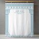 Elegant Greek or Roman Toga party backdrop featuring minimalist temple pillars and Greek meander pattern in blue. Customizable product for a memorable celebration. Perfect for your Ancient Greece or Ancient Rome-themed party.