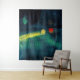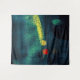 La obra de arte original y abstracta de ZoeSPEAK en este tapiz de pared fue creada a partir de una fotografía original de una hoja de plátano. Las curvas verdes ondulantes de las hojas gigantes y con lazos forman el fondo de las gotas de lluvia y los colores, rojo y amarillo.