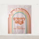 Letrero de fiesta de cumpleaños número uno Groovy One Retro Rainbow con margaritas boho.