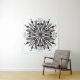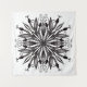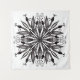 Tapiz de mandala gótica con hojas y serpientes dibujadas digitalmente en blanco y negro, con sombra de un pezón.