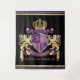 Cree su muy poseen el escudo de armas aristocrático, el emblema, insignias o el escudo de la familia con este escudo o diseño hermoso, clásico del escudo. Las rayas de la púrpura real adornan un escudo rematado con la corona de oro y flanqueado por el león o el grifo heráldico medieval. Una bandera superior a juego lleva a cabo su fecha de encargo del boda/la fecha de nacimiento/el grito del lema o de batalla. El escudo tiene espacio para sus iniciales del monograma. La bandera inferior lleva su apellido. Substituya el texto de la muestra por sus el propio para un regalo personalizado. Diseñé esto para trabajar para las familias, los pares y los individuos. Hace un regalo maravilloso para el día internacional de la heráldica, los fiestas medievales o Fantasía-temáticos, boda, aniversario, cumpleaños, retiro, promoción, el día de padre, despedida de soltero, ducha de la boda, graduación y otras ocasiones especiales.