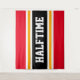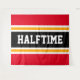 Este diseño deportivo y atlético presenta texto HALFTIME en negrita dentro de una banda negra ancha realzada con doble franjas de carreras blancas y amarillas contra rayas externas de color rojo brillante. El texto de este diseño se puede personalizar.