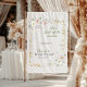 Elegant hand-painted watercolor florals in soft pinks and whites bloom around a luxurious gold frame in this bridal shower tapestry. Ideal as a modern yet whimsical welcome backdrop for Elaine's "She's Fresh Off the Market" farmers market-inspired event. Easy-hang fabric, customizable text & size — perfect photo spot!