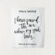 La señal de boda con "He encontrado al que ama mi alma" verso del Cantar de los Cantares es una de las más populares para una ceremonia. La tipografía moderna hace que este fondo para cabina de fotos sea perfecto para una recepción de boda. Puedes cambiar los nombres y el color de las fuentes y el fondo, solo haz clic en "Editar diseño".