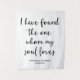 Fondo de pantalla personalizado para boda con la cita "He encontrado al que ama mi alma" y nombres y fecha del evento editables. Decoración para recepción o ceremonia en blanco y negro.