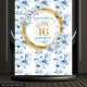 Tapiz Hermoso cartel brillante dorado de dieciséis azul