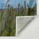 Escena típica de verano en el Yukón y otras zonas del norte. También aparece un texto de personalizable que dice "El Yukón". Terreno plano y pantanoso dominado por abetos negros. Nubes aferradas a una cordillera lejana. Una tierra hermosa y frágil.