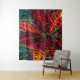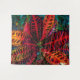 Este tapiz mural presenta obras de arte originales de ZoeSPEAK de un crotón, una planta de jardín tropical con hojas variadas que parecen animales salvajes impresos en la jungla. Las hojas comienzan como verdes y amarillas, y se vuelven más oscuras en naranja rojizo y verde azul profundo a medida que crecen en un brote de fauna.