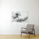 Tapiz Hokusai se reúne con fibonacci, negro y blanco