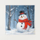 Tapiz Hombre de nieve en bosque frío con bufanda roja