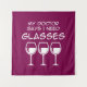 Funny wine pun: “My doctor says I need glasses.” Three wine glasses deliver clever wine humor. Perfect for wine lovers and party nights. Celebrate with witty, adult humor.