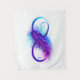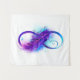 Infinity symbol with a beautiful feather painted in purple and blue bright colors on white background.
