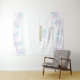 Lindo fondo de bienvenida personalizado de Winter Onederland primer cumpleaños con copos de nieve púrpura y azul y brillo. Ilustración digital de Kristine Lee. Para más, visite www.kristineleedesigns.com
