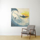 Tapiz Isla tropical, ola, puesta de sol surfista.