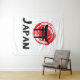 Ilustracion japonés de diseño de texto con sol rojo grueso y decoración de la puerta Torii para todos los que les gusta viajar