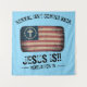 Jesús está regresando, este diseño cristiano presenta una bandera norteamericana con una cruz y las palabras "normal no está regresando, Jesús es, Revelación 14.