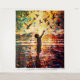 Heartwarming oil painting of a joyful child standing in shallow water, arms raised splashing water toward the sky while playing with a flock of birds flying into a radiant sunrise. Vibrant splatter brushstrokes in blues, oranges, yellows, and reds capture innocence, freedom, and pure happiness. Perfect uplifting wall art for nurseries, kids' rooms, or family spaces seeking inspirational and playful decor. High-quality print brings the magical light and energy to life.