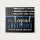 Este diseño incluye una bandera de la fuerza policial con rayas blancas y negras, y una delgada franja azul. El texto de "La leyenda es agotadora" se encuentra por encima del nombre de personalizable del agente de la ley que se retira, sheriff, capitán o jefe. ¡Celebra este hito con estilo!