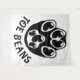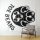 Una pata negra con judías negras en los dedos de los pies, con el texto "Judías de remolque", debajo de la pata.