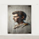 Dieses moderne, realistische Porträt von Julius Caesar zeigt den legendären römischen Führer in einem zeitgemäßen, künstlerischen Stil. Seine markanten, scharfen Gesichtszüge, das kurz gelockte Haar und der entschlossene Ausdruck verleihen ihm eine Aura von Autorität und Intelligenz. Der Hintergrund ist subtil gestaltet mit Anspielungen auf antike römische Elemente wie Marmorstrukturen und Lorbeerkränze, die Tiefe und historische Bedeutung vermitteln. Das Porträt vereint historische Authentizität mit modernem Flair, ideal für Kunstsammler und Liebhaber klassischer Antike, die eine kraftvolle und zeitlose Darstellung von Caesar schätzen.