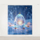 Ein funkelnder Apfel aus reinem Kristall liegt eingebettet im weichen Schnee. Um ihn herum tanzen leuchtende Glühwürmchen, die mit ihrem warmen Licht das frostige Blau durchbrechen. Ein magisches Zusammenspiel aus Kälte und Licht, Natur und Fantasie – wie ein Schatz aus einer anderen Welt.