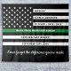 Añada el toque final a su fiesta militar de retiro con estos delgados carteles de diseño de línea verde militar y suministros de fiesta. Bandera estadounidense en diseño de colores militares. Este delgado cartel de fiesta de línea verde es perfecto para un fiesta de retiro militar, despliegues militares, celebración de casa de bienvenida militar, graduación militar y soldados que se van fiesta. Perfecto para todo el ejército, ejército, protección de fronteras, patrulla fronteriza, oficial de conservación, guardabosques, guardián de juegos, aplicación federal de la ley. Personalice este tapiz delgado de la línea verde con su nombre, rango, departamento, años de servicio. Vea nuestra colección de regalos militares de retiro, regalos de graduación militar, favores partidarios y suministros. DERECHOS RESERVADOS © 2021 Judy Burrows, Black Dog Art - Todos los derechos reservados. El retiro militar personalizado y el diseño delgado de la línea verde