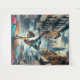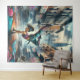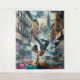 El diseño muestra una escena animada en la que una bailarina de rotura actúa en pleno movimiento en la calle. El personaje principal, el bailarín de rupturas, está en medio de un poderoso atril.