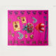 "This vibrant Valentine’s tapestry is a celebration of love with its striking pink background and whimsical romantic motifs. Each design element is crafted to stand alone yet come together seamlessly, creating a tapestry that’s both a modern pop of color and a nod to classic love symbolism."